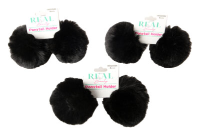BK/WH 8CM DOUBLE POMPOM PONYTAIL